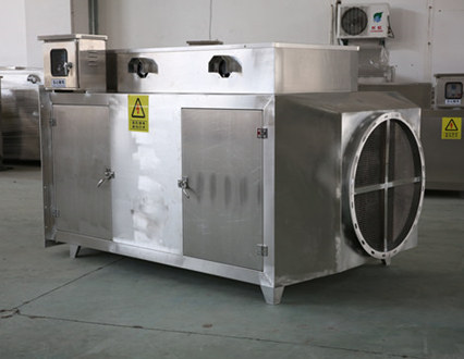 含油煙顆粒物的廢氣吸入高低壓板式末端廢氣處理設備后,其中部分較大的有霧滴、油污顆粒在均流板上由于機械碰撞、阻留而被捕集。